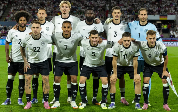 1 O. Baumann - 13 Collins (22 Raum, 46'), 2 Rüdiger, 4 Tah, 18 Mittelstädt - 6 Kimmich ©, 16 Stiller (10 Amiri, 60') - 20 Gnabry (14 Adeyemi, 66') 8 Goretzka, 17 Wirtz - 11 Woltemade